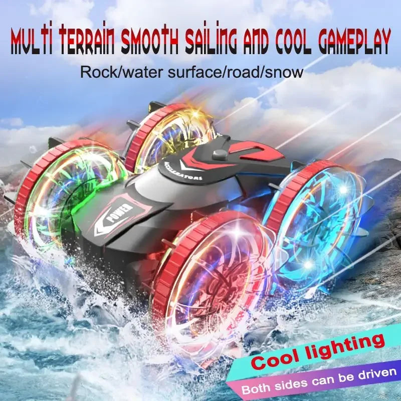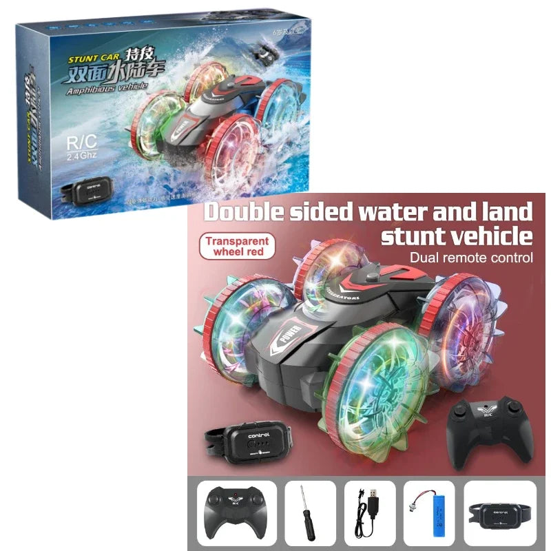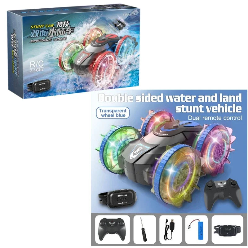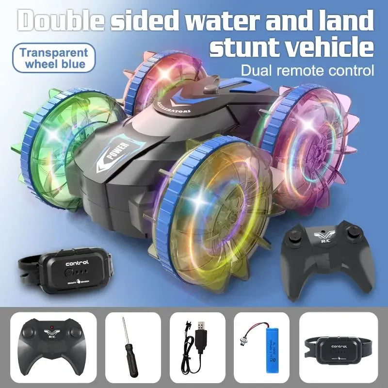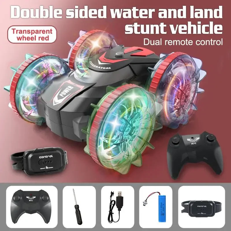Rc Cars Double Sided Dual 4WD Remote Control Stunt Car Light Wheel Watch Gravity Sensing Amphibious Car Toy Gifts for Children