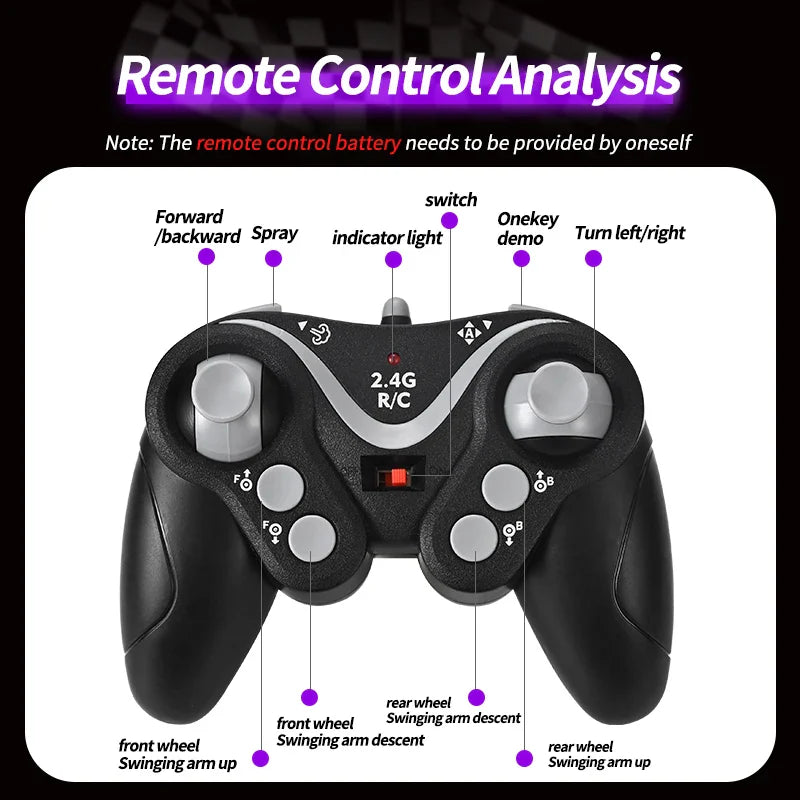 Children's charging remote control car toy boy induction climbing car eight-wheel spray swing arm stunt deformation car